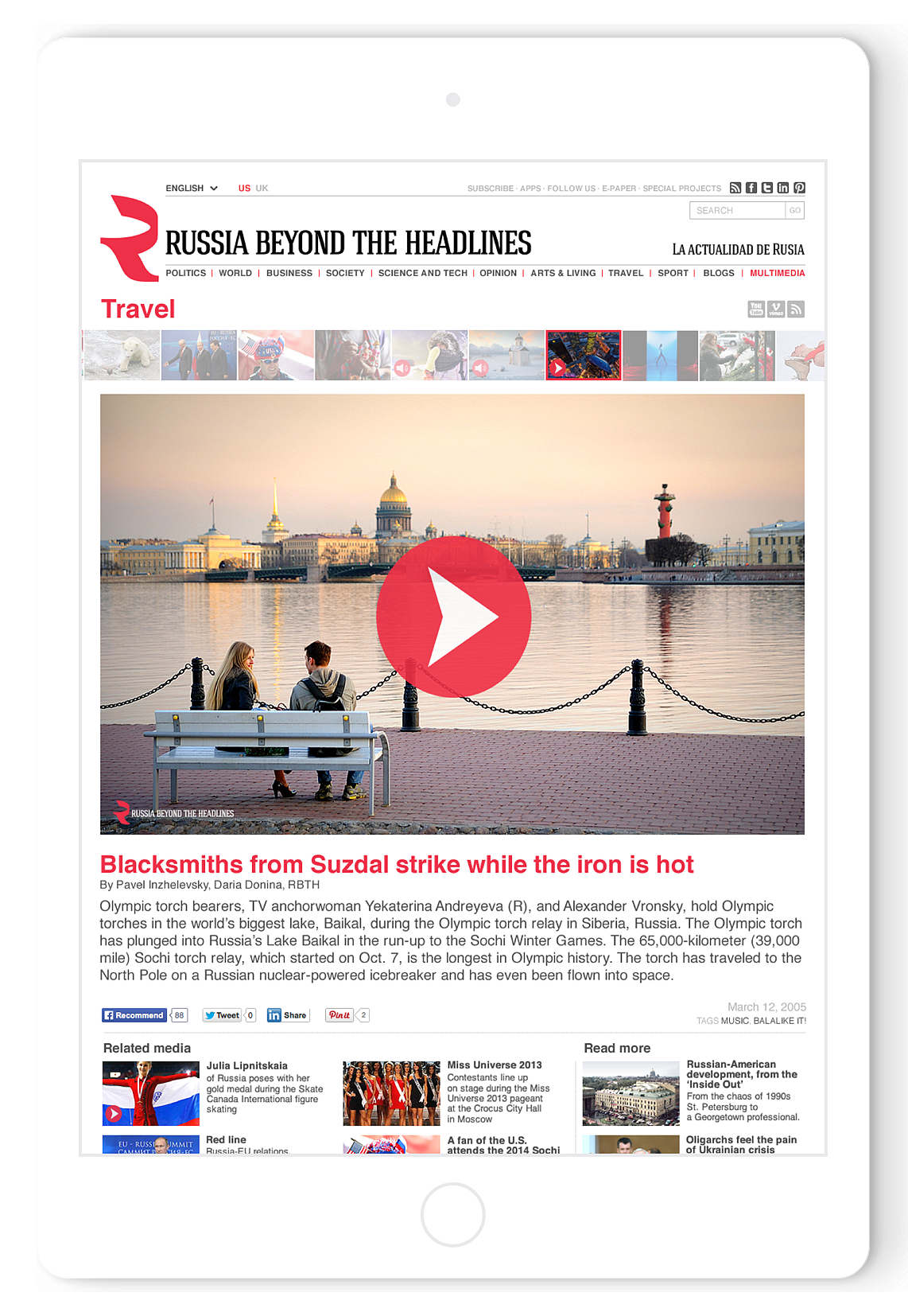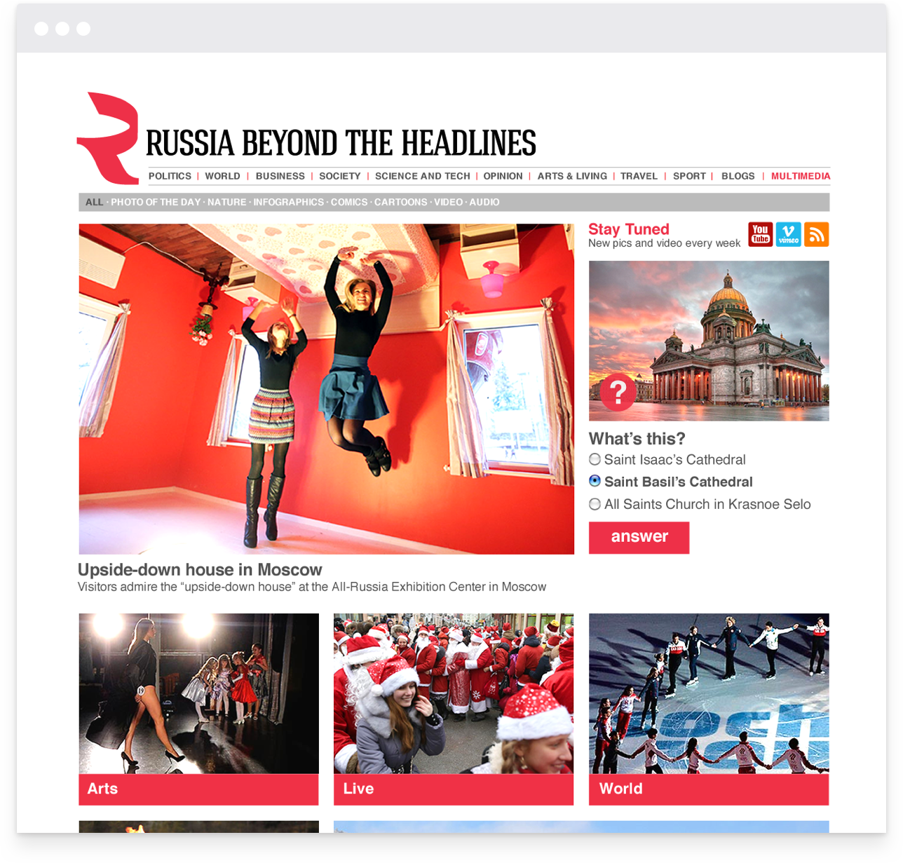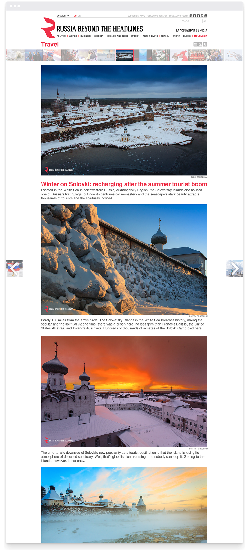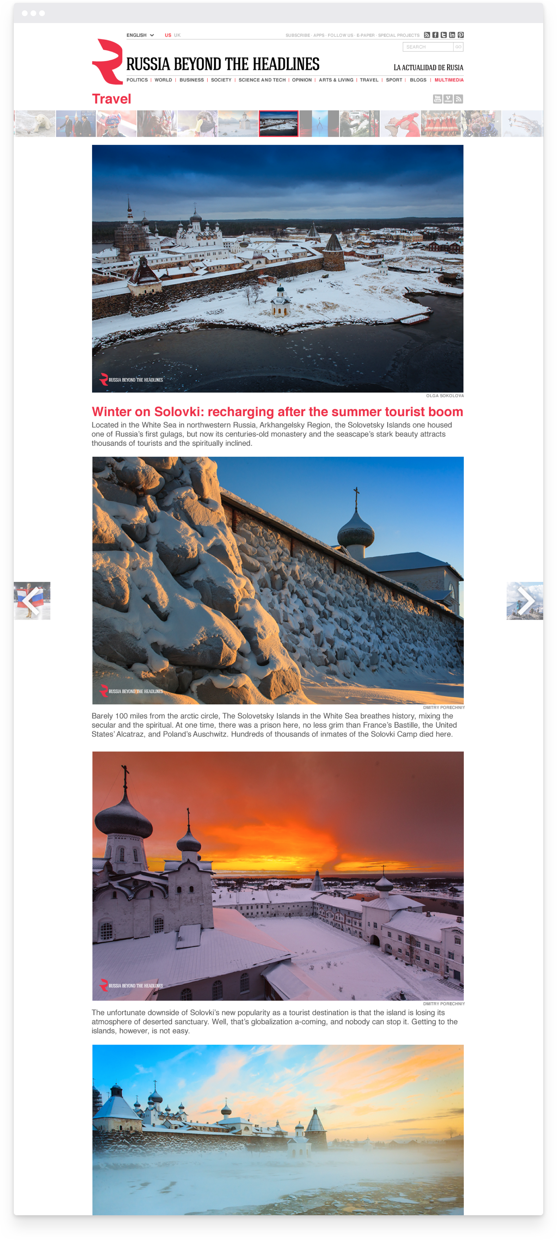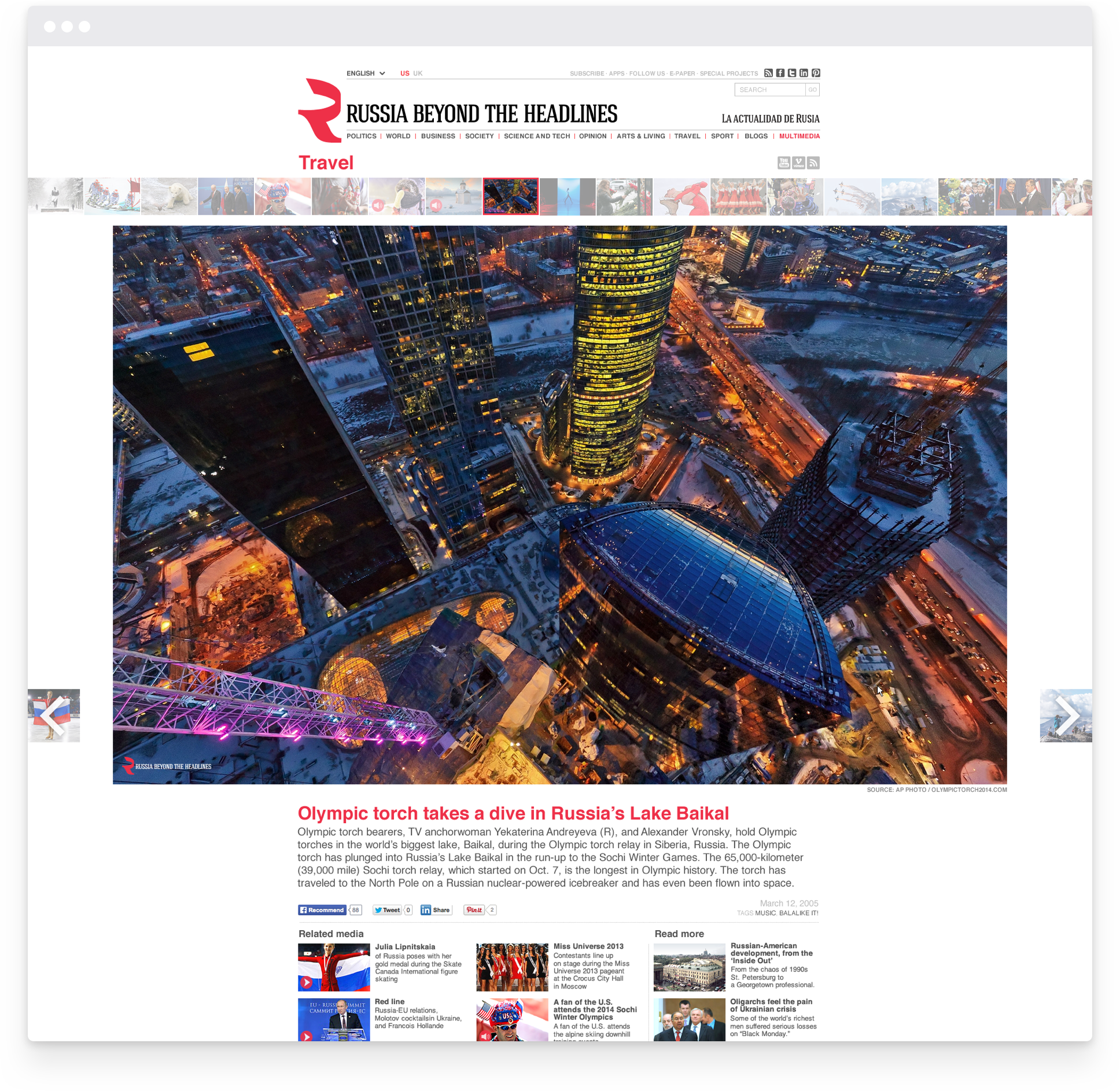 Russia Beyond The Headlines — международный мультимедийный проект «Российской газеты», который активно развивается на 17 языках в 30 странах мира. В проекте публикуются новости и статьи политической, культурной, научной и общественной жизни России.